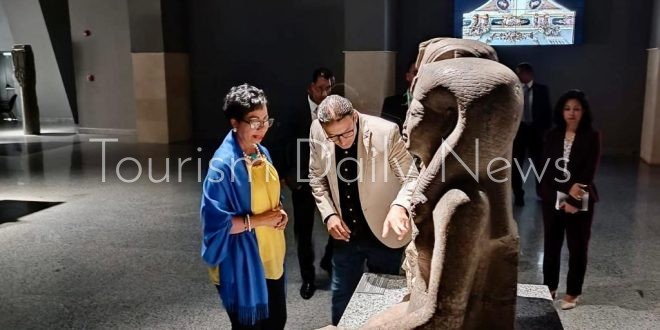 كما قام الضيوف كذلك بزيارة المعرض المؤقت المقام حاليا بالمتحف تحت عنوان”مصر وإرثها البيئي” والذي يلقي الضوء من خلال ما يضمه من قطع أثرية على اهتمام المصري القديم بالبيئة ودوره في الحفاظ عليها.