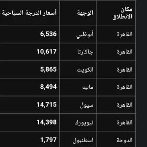 وأعلنت الاتحاد للطيران، الأسعار المخفضة على الدرجة السياحية حسب ما هو موضح بالجدول التالي: