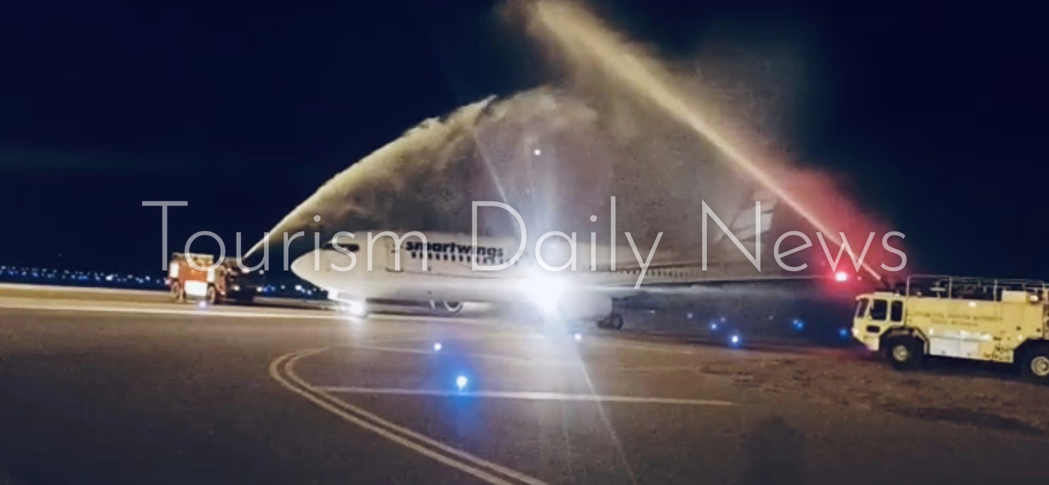 و قد استقبل المطار أولي الرحلات بالجسر المائى فور هبوط الطائرة تعبيرا عن الترحيب بعودة رحلات الشركة المجرية مرة أخرى وقام فريق العلاقات العامة فى مطار طابا بالترحيب بالسائحين وتيسير إجراءات وصولهم .