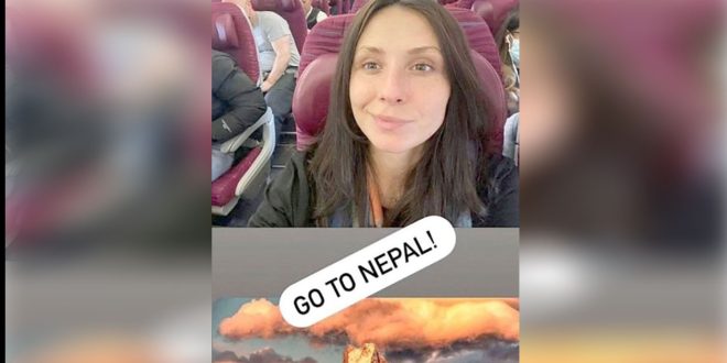وشاركت إيلينا متابعيها صورة “سيلفي” عبر خاصية ستوري إنستجرام، فور اقتراب الطائرة من مطار بوخارا الدولي، معبرة عن حماسها الشديد للاطلاع على النيبال وحضارته وثقافته، وعلّقت: “اذهب إلى نيبال!”.