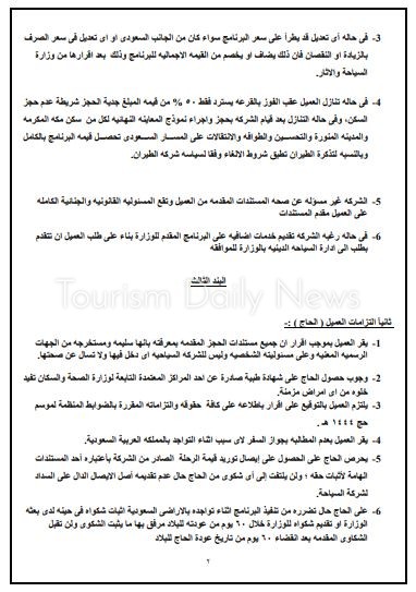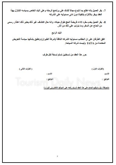 كما ينص العقد على وجوب حصول الحاج على شهادة طبية صادرة عن أحد المراكز المعتمدة التابعة لوزارة الصحة والسكان تفيد خلوه من أى أمراض مزمنة. ويتضمن كذلك آلية الشكوى في حالة وجود خلاف أو مشاكل سواء قبل السفر وخلال التواجد بالأراضي المقدسة .