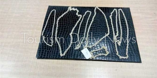 وبالعرض على محمد سعيد الشربيني مدير إدارة الجمرك قام بتشكيل لجنة لتفتيش حقائب الراكب وتفتيشه ذاتيا من عاصم فتحي رئيس قسم الوديعة وبسمه كمال مأمور الحركة وحازم عطاالله رئيس قسم الأمن الجمركي ومصطفى حسين رئيس الوردية فتبين وجود ٤ سلاسل من معدن أبيض اللون يشتبه أن يكون معدن ثمين بوزن إجمالي 660 جم قائم تقريبا موضوعبن على شكل سلاسل لحقائب يد حريمي (سلسلة لكل حقيبة يد حريمي) داخل حقيبة الراكب و1 سلسلة من معدن أبيض اللون يشتبه أن يكون معدن ثمين بوزن إجمالي قائم 275 جرام تقريبا يرتديها الراكب بإجمالي 5 سلاسل من معدن أبيض اللون يشتبه أن يكون معدن ثمين بوزن إجمالي قائم 935 جراما تقريبا افا الراكب بأنها جميعا سلاسل ذهبية عيار 24.