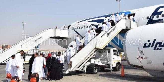 يأتي ذلك ضمن الجسر الجوي الذي دشنته شركة مصر للطيران لنقل حجاج بيت الله الحرام إلى الأراضي المقدسة، بمختلف فئاتهم.