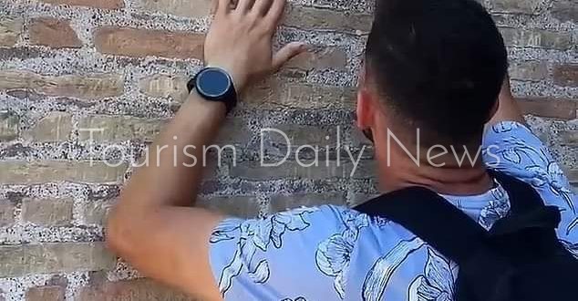كتب_أحمد زكي : ساد غضب في إيطاليا بعد أن تم تصوير سائح وهو يكتب “إيفان + هايلي” على جدار المعلم السياحي المشهور “الكولوسيوم” في روما.