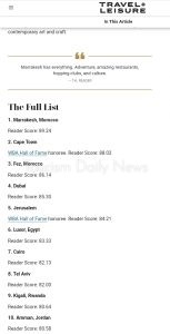 وحسب الموقع المتخصص في السفر والسياحة، فإن قائمة 2023، تتضمن بعضا من أقدم المدن في العالم، وسيطرت منطقة شمال إفريقيا على القائمة خاصة المغرب ومصر، إذ تعتبر من الدول الأكثر زيارة في القارة.
