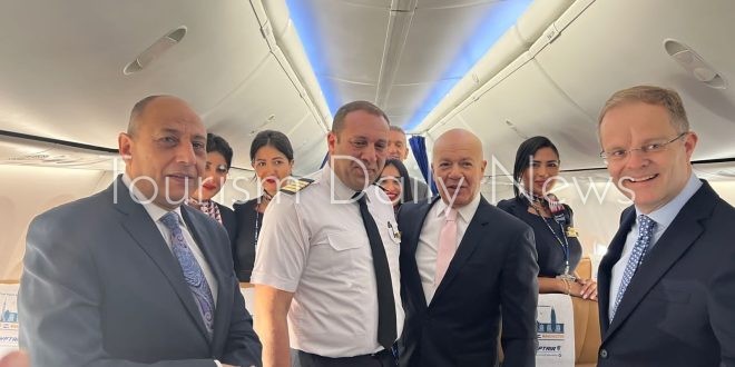 جدير بالذكر أن شركة مصر للطيران قامت بتوزيع الهدايا التذكارية على جميع المسافرين على هذه الرحلة احتفالا باعادة تشغيل هذا الخط والتقاط الصور التذكارية معهم .