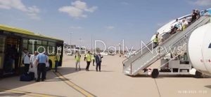 ونشر مطار مصراتة، صورًا توثق لحظة وصول طائرة مصر للطيران، التي حطت في أحد مدرجاته صباح اليوم.