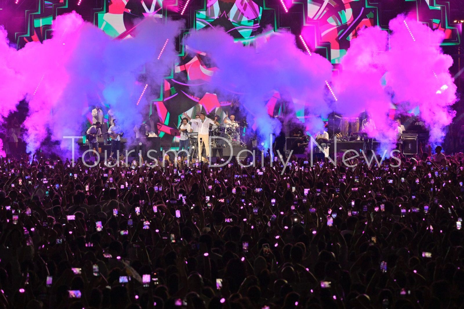 واحتشد الجمهور بالالاف في مسرح الحفل قبل انطلاقه بساعات مرتديا الملابس البيضاء في أجواء من البهجة والسعادة، حيث صعد عمرو دياب على أنغام أغنيته الشهيرة “يا أنا يا لأ” وسط تفاعل كبير من الجمهور الذي هتف ورقص على أغنيات الهضبة منذ البداية وعلى مدار ساعتين.