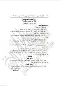 وأوضحت الجريدة الرسمية، أن ذلك القرار جاء بعد الاطلاع على الدستور، وعلى القانون تنظيم الشركات السياحية، وعلى القانون رقم 72 لسنة 2021 بإنشاء البوابة المصرية للعمرة وتنفيذ الشركات السياحية رحلات العمرة؛ وعلى قانون إنشاء الغرف السياحية وتنظيم اتحاد لها الصادر بالقانون رقم 27 لسنة 2023؛ وعلى قرار رئيس الجمهورية، وعلى اللائحة التنفيذية للقانون رقم 38 لسنة 1977 الصادر بقرار وزير السياحة رقم 209 لسنة 2009؛ وعلى قرار وزير السياحة والآثار رقم 43 لسنة 2020 بتشكيل اللجنة العليا، وعلى قرار وزير السياحة والآثار رقم 235 لسنة 2023؛ وعلى توصيات اللجنة العليا للعمرة والحج، وعلى كتاب لجنة تسيير أعمال غرفة شركات ووكالات السفر والسياحة.