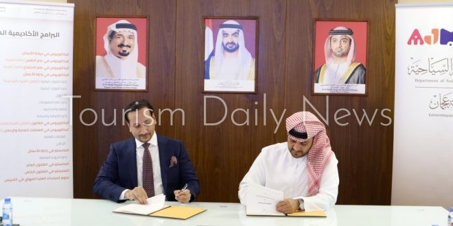 كتبت- سها ممدوح: وقعت دائرة التنمية السياحية في عجمان، مذكرة تفاهم مع جامعة المدينة-عجمان، لتعزيز التعاون والتنسيق المشترك بينهما وتبادل الخبرات في مجال الخدمات المجتمعية والتجارب المؤسسية، وقعها من جانب الدائرة مديرها العام، سعادة محمود خليل الهاشمي، ومن جانب الجامعة مديرها، سعادة عمران خان.