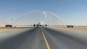 من جانبه، وجه الطيار أحمد منصور رئيس مجلس إدارة الشركة المصرية للمطارات التعليمات بالترحيب بخط الطيران الجديد وتسهيل جميع إجراءات الوصول وبالفعل قد تم استقبال الطائرة بتقليد رش المياة المتبع عالميا Water Salute.
