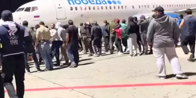 وقالت وزارة الداخلية في وقت سابق إنها ألقت القبض على 60 شخصا بعد أن اقتحم حشد مناهض لإسرائيل مطار محج قلعة في داغستان أمس الأحد لدى وصول طائرة قادمة من إسرائيل.