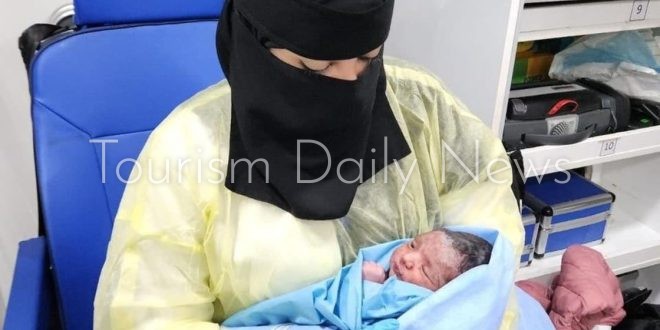 وأوضحت إدارة المطار أنه تم تلقّي بلاغ من برج المراقبة الجوية يفيد بوجود حالة ولادة لسيدة على متن رحلة الخطوط السعودية رقم “1546” القادمة من تبوك، وفور تلقّي البلاغ قامت إدارة العمليات بطلب الخدمات الطبية والإسعافية التابعة للمطار، حيث تم توجيه قائد الطائرة بالهبوط في أقرب بوابة لضمان تقديم المساعدة الطبية العاجلة. وتم توفير فريق طبي يضمّ مسعفات سعوديات مؤهّلات للمساعدة الطبية في مثل هذه الحالات الطارئة، وتمت معاينة الحالة وتقديم جميع الخدمات الإسعافية اللازمة للسيدة والطفلة المولودة.