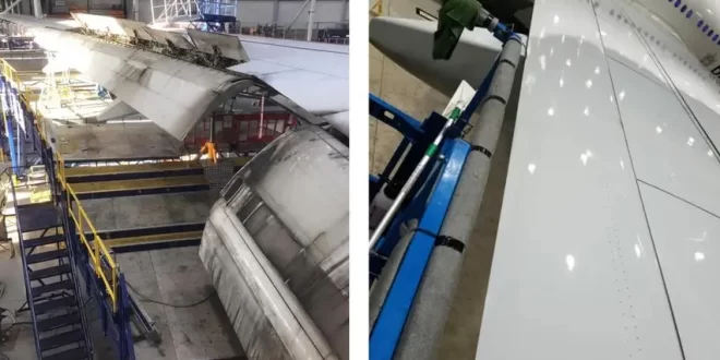 ويضمن الغسيل الجاف الحفاظ على النظافة التامة للطائرات حتى أثناء ركنها، حيث يحمل بطبيعته العديد من المزايا الملموسة، بما يشمل إمكانية استخدامه في مواقع مختلفة، وفعاليته في غسل الهيكل الخارجي للطائرات كاملاً أثناء توقفها من أجل الصيانة، وعدم حاجته إلى نظام لتصريف المياه.