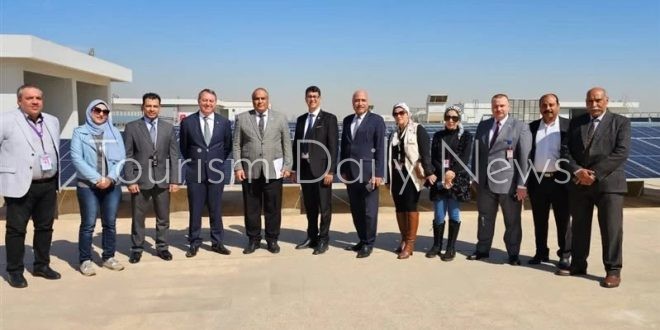 وخلال الزيارة تم الاطلاع علي أحدث التطورات بمطار القاهرة الدولي، حيث شاهد الوفد المشاية الكهربائية التي تربط بين الجراج متعدد الطوابق ومبانى الركاب، وتحتوى على 5 أماكن للخدمات موزعة بطول المشاية ومزودة بعربات أخدم نفسك وعربات الجولف كار، كما تم زيارة الجراج متعدد الطوابق والذي تصل طاقته الاستيعابية لأكثر من 2500 سيارة بمساحة للدور 18000 م2 ومساحة إجمالية 90000 متر بالإضافة إلي ساحة انتظار أمامية لخدمة ما يقرب من 100 أتوبيس ومينى باص، وزيارة المحطة الجديدة للطاقة الشمسية التي تم تنفيذها أعلى الجراج متعدد الطوابق بهدف دعم التحول إلى الطاقة الجديدة والمتجددة فى قطاع الطيران.