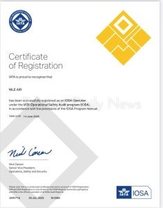 كتبت – سها ممدوح : منح الاتحاد الدولي للنقل الجوي ” الاياتا “شركة النيل للطيران تجديد اعتماد شهادة “الايوزا “حتي عام 2026 وذلك بعد ان اجتازت الشركه التدقيق الذي قامت به هيئه معتمده من الاياتا علي تطبيق الشركة لاعلي معايير كافة الاجراءات التي تتعلق بالسلامة والأمن طبقاً للمستويات القياسيه ” للإيوزا ” وذلك في القطاعات المعنية بالشركة وتعتبر هذه هي المرة السادسة علي التوالي التي تجتاز فيها النيل للطيران هذه الشهادة وجدير بالذكر بان تجديد شهاده الايوزا كل عامين وقد أشادت لجنه التدقيق والمراجعة بفريق عمل النيل للطيران من حيث الالتزام والتعاون .