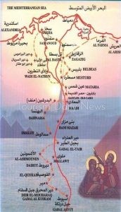 11ـ وادى النطرون: بعد أن ارتحلت العائلة المقدسة من مدينه سخا عبرت الفرع الغربى للنيل حتى وصلوا إلى وادى النطرون وهى برية شيهيت. يضم وادي النطرون أربعة أديره عامره وهى :