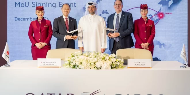 وقال الرئيس التنفيذي للقطرية للشحن الجوي: “ترمز مذكرة التفاهم هذه إلى الالتزام المتبادل بشراكة أعمق، كما تهدف إلى دمج شبكة وجهات الناقلة القطرية والخطوط الجوية اليابانية عبر مقر أعمالهما في مدينتي الدوحة وطوكيو. وسيعزز ذلك شبكة الربط وعروض المنتجات للعملاء، بالإضافة إلى ربط اليابان بشبكة الخطوط الجوية القطرية الواسعة في أوروبا والشرق الأوسط والمشرق العربي وأفريقيا، والعكس صحيح. كما سيستفيد العملاء من تعزيز الاتصال والوصول إلى مجموعة أوسع من الوجهات”.