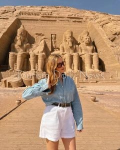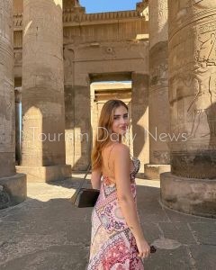 زارت المصممة الشهيرة معابد الكرنك والأقصر، وتجولت بين أروقة وادي الملوك والملكات، وصعدت إلى معبد الملكة حتشبسوت الذي يحمل تاريخًا من القوة والدهاء. لم تتوقف زيارتها هنا، بل واصلت استكشافها إلى معبد خنوم بمدينة إسنا، حيث سحر النقوش والرسومات التي تحكي قصة إبداع لا ينتهي.