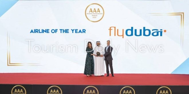 وتسلم الجائزة نيابة عن فلاي دبي فرانسوا أوبرهولزر، الرئيس المالي في فلاي دبي وراشد البشري، نائب الرئيس للشحن الجوي، وديانا سنكلير، نائب الرئيس لتجربة الطيران خلال الحفل الذي أقيم في دبي، بحضور ممثلي قطاع الطيران وشركات السياحة والسفر.