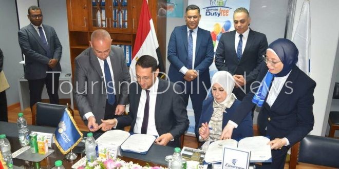 وقع البروتوكول كل من نسرين جعيصة رئيس قطاع الأسواق الحرة بمصر للطيران وأحمد عرابي رئيس القطاع التجاري بشركة النيل للطيران.