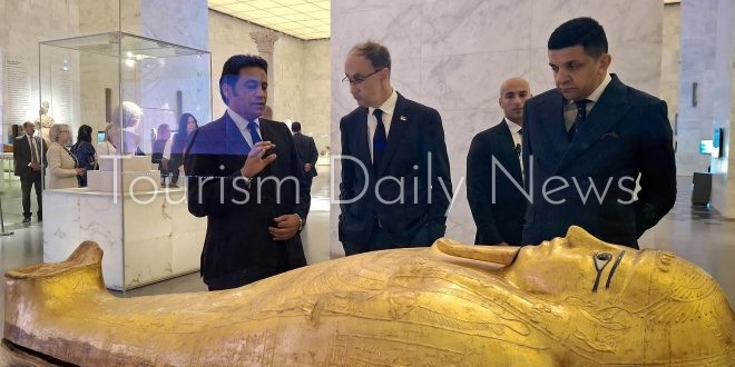 وكان في استقبالهم بالمتحف المصري الكبير الدكتور أحمد غنيم الرئيس التنفيذي لهيئة المتحف المصري الكبير الذي رحب به وتحدث معه عن المتحف وأهم مقتنياته، ثم قام رئيس الوزراء الصربي والوفد المرافق له بجولة بالساحة الخارجية والبهو الرئيسي والدَّرَج العظيم وقاعات العرض الرئيسة بالمتحف، حيث استمع إلى شرح مفصل عن هذه الأماكن والمقتنيات المتميزة للمتحف.