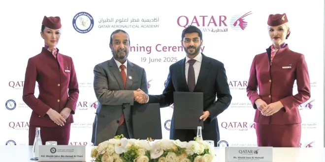 كتبت- دعاء سمير- وكالات: أبرمت أكاديمية قطر لعلوم الطيران والخطوط الجوية القطرية مؤخرا اتفاقية خلال معرض باريس الدولي للطيران في مدينة لوبورجيه بباريس – فرنسا حيث يُعد هذا المعرض منصة عالمية تجمع رواد ومشغلي ومحترفي صناعة الطيران، ويستعرض أحدث الابتكارات والتقنيات في هذا القطاع الحيوي.