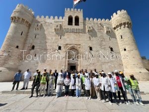 وعقب انتهاء جولته بالمتحف، توجه السيد الوزير والوفد المرافق له لزيارة قلعة قايتباي حيث استمع الي شرح مفصل من الدكتور محمد متولي مدير عام آثار الاسكندرية للآثار الإسلامية والقبطية عن آخر مستجدات أعمال مشروع ترميم القلعة والتوقيتات الزمنية المحددة للانتهاء منه، كما شملت الجولة زيارة الأسوار الداخلية والخارجية والبرج الرئيسي والمسجد والصهريج بالإضافة إلى تفقد الخدمات السياحية بالقلعة منها اللافتات الإرشادية ومركز الزوار والتي تم افتتاحه مؤخراً بعد تطويره ليستعرض المعلومات اللازمة عن عدد من المنشآت الأثرية الفريدة بالإسكندرية وتطور التحصينات الدفاعية بمدينة الإسكندرية، مركزاً على الدور التاريخي لقلعة قايتباي، إلى جانب التحصينات التي شُيّدت في عهد محمد علي باشا على امتداد الساحل الشمالي.