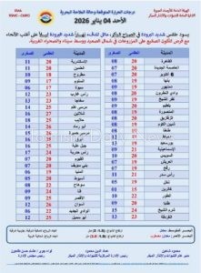 وفيما يلي بيان بدرجات الحرارة المتوقعة اليوم على محافظات ومدن مصر: