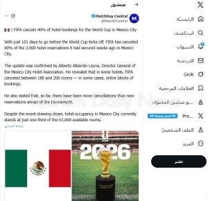 كما ذكر أن عدد الإلغاءات حتى الآن يفوق عدد الحجوزات الجديدة قبل انطلاق البطولة.