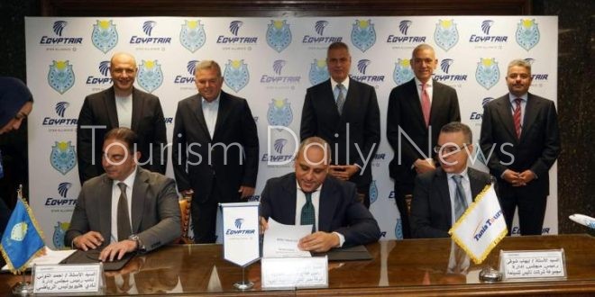 وقد وقع البروتوكول كلٍ من عمرو عدوي رئيس قطاع الشئون التجارية بشركة مصر للطيران للخطوط الجوية، وأحمد التوني نائب رئيس مجلس إدارة النادي وإيهاب شوقي رئيس مجلس إدارة مجموعة شركات تانيس للسياحة (وكيل مصر للطيران).