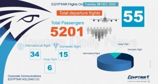 تسير مصر للطيران غداً الاربعاء 56 رحلة جوية إلى كل من دبي ، أبوظبي ، اسطنبول، الشارقة، الخرطوم، بيروت ، واشنطن، الرياض، بغداد، جدة، الدمام، المدينة المنورة، لندن، باريس، امستردام، روما، نيويورك، ميلانو، البحرين، عمان، مسقط، و 20 رحلة داخلية الي كل من شرم الشيخ و الغردقة و الأقصر و …