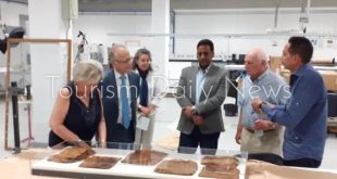 كتبت- أميرة أحمد: استقبل مركز ترميم الآثار بالمتحف المصري الكبير، اليوم، الأحد، سفير دولة اليونان الجديد بالقاهرة نيكولاس جاريليدس و حرمه و البروفيسور كريستوس زيريفوس عضو أكاديمية اثينا. واصطحب د.الطيب عباس مدير عام المتحف المصري الكبير للشئون الاثرية، الوفد في جولة بمعامل الترميم المختلفة بالمركز و خاصة مركز ترميم الأخشاب …